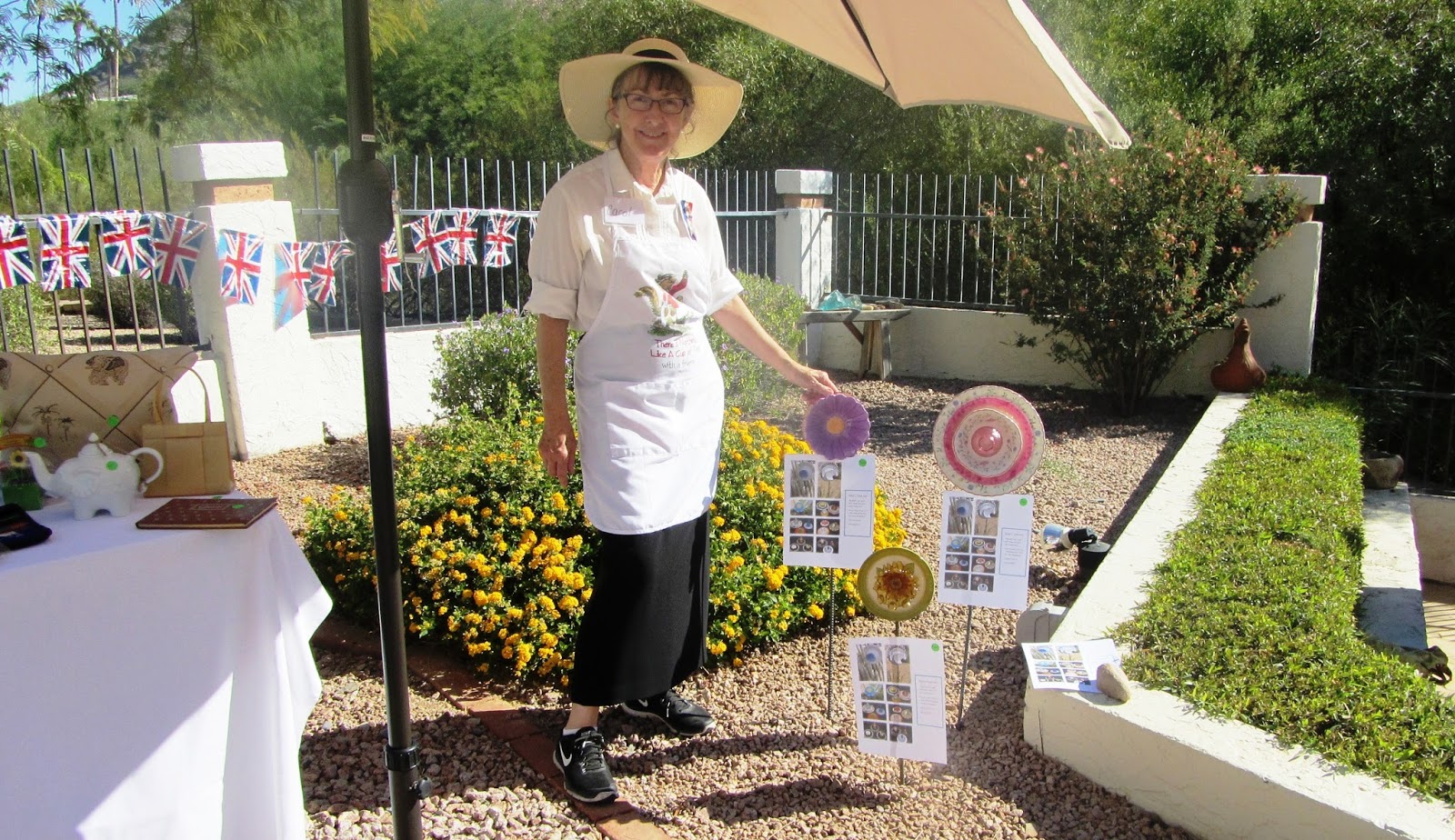 My Mom joined the Daughters of the British Empire in 1946 after she arrived in Phoenix from Brisbane Australia after WW2. She states that it kept many a marriage together as the War Brides shared the joys and struggles of being in a new country away from their family. She has been active for over 70 years. I joined after I retired, but have helped for many a year before that. The DBE was always a part of my childhood. We are a 501c3 organization and we have one big fundraiser each year. All profits go to the British Home and a local charity of our choice. We cleared $1959 on this garden tea! We have about 12 members and many volunteers who help at the tea (15 volunteered this year)